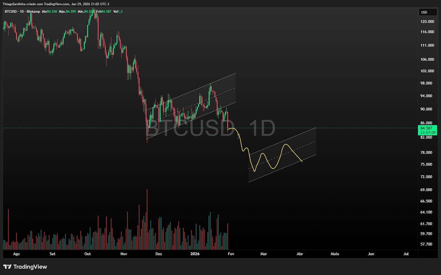Bitcoin atingiu máxima histórica de U$125,800 em outubro de 2025 e desde então foi ladeira abaixo. Quais os níveis mais importantes e o que fazer?